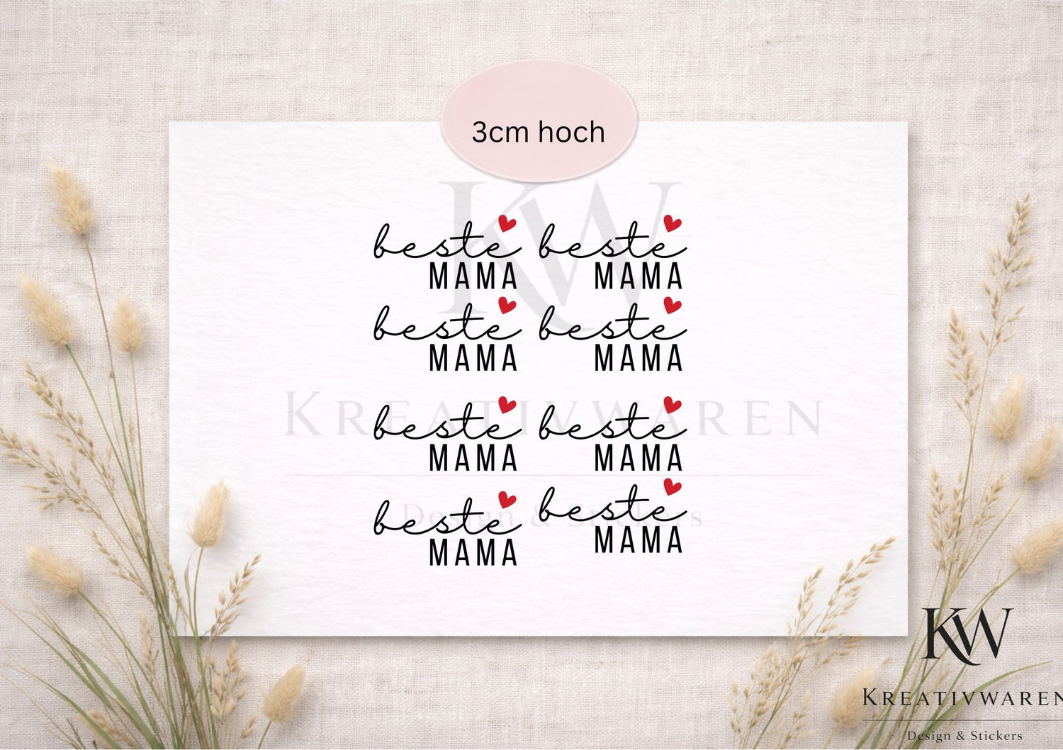 Rub Ons „beste Mama“ – Motiv 3cm A6 Rub-On Sheet, randlos