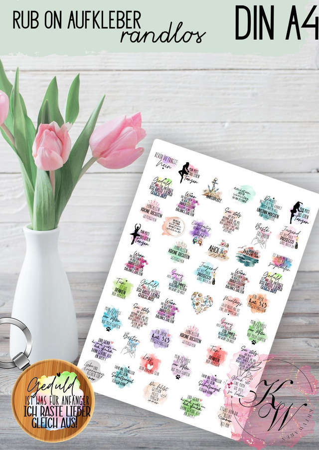 Mit diesen Rub-On Sticker lassen sich glatte Oberflächen wie Glas, Kunststoff, Holz, u.ä. wunderschön dekorieren und individualisieren. Sehr gut geeignet sind sie auch für Gießmassen.