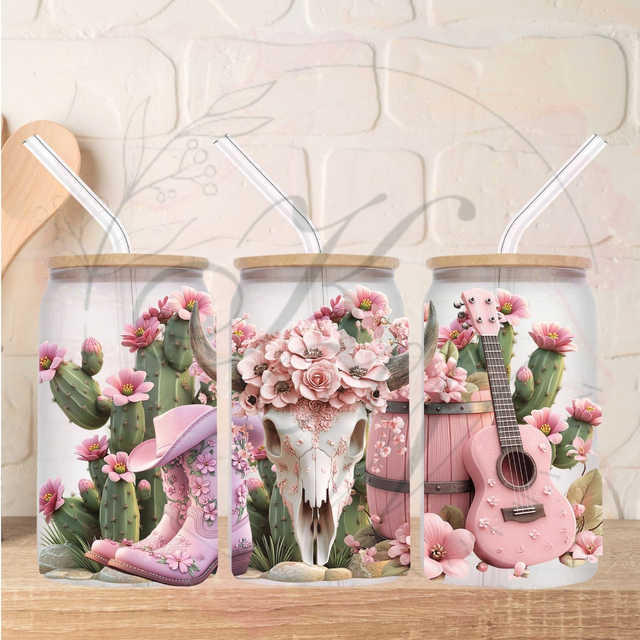 Trinkgläser 16oz Rub Ons "Cow Girl pink" No.307