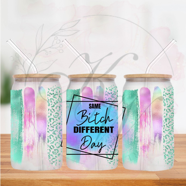 Trinkgläser 16oz Rub Ons "same bit** different day" No.273