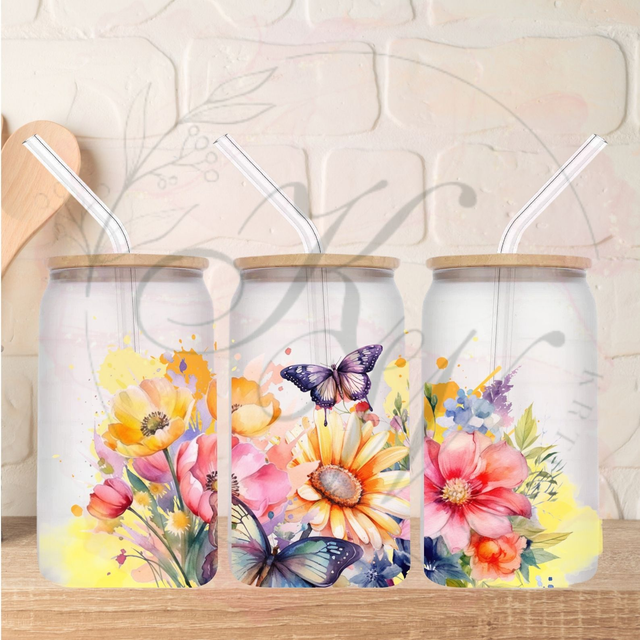 Trinkgläser 16oz Rub Ons "Schmetterling gelb" No.320